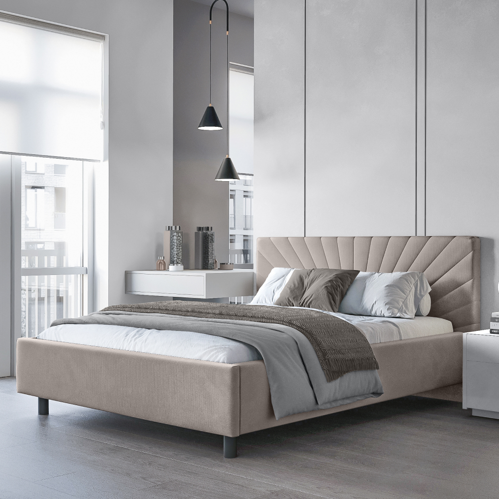 Кровать «Miranda» в минималистичном стиле принесет комфорт и уют в спальную зону. Деликатная строчка на изголовье в форме исходящих лучей смотрится лаконично и стильно.